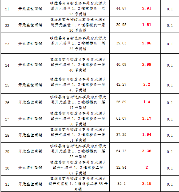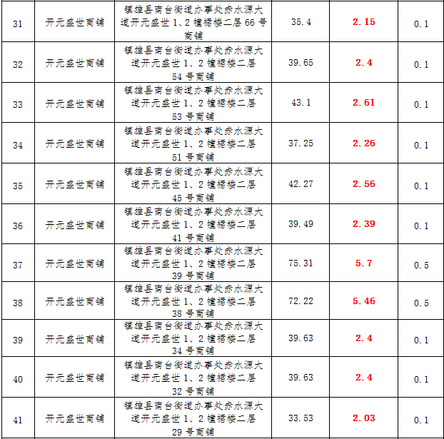 (一)拍租鎮(zhèn)雄發(fā)展集團(tuán)有限公司國(guó)有門面3年期使用權(quán),詳見下表: